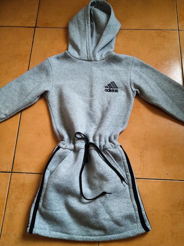 Дуже тепле спортивне флісове платтячко ! На фігурі сидить дуже гарно, виглядає дуже стильно та сучасно! Шнурок можна зав'язати на талії, або приспустити на стегна. Носити дуже зручно, не треба підбирати верх до низу:) Пасує з колготками будь яких кольорів та тканин, а також, в більш холодну погоду добре пасує навіть з теплими легінсами, бо воно спортивного стилю і це дуже вигідно та зручно для холодного періоду року! Деякі важливі деталі: довжина по спині - 68см. ширина плечей - 36см. ширина талії - 36см. довжина рукава від плеча - 47см.