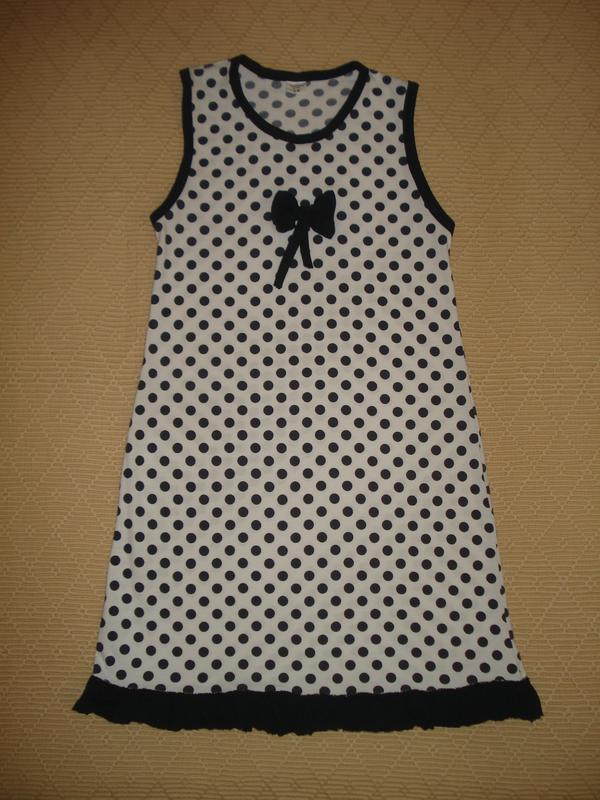 Платье в горошек на девочку 6-7 лет Состав: 100% хлопок. Цвет - белый, горохи - синие. Платье в отличном состоянии. ЗАМЕРЫ: Длина - 64 см. Ширина (от подмышки до подмышки) - 29,5 cм.