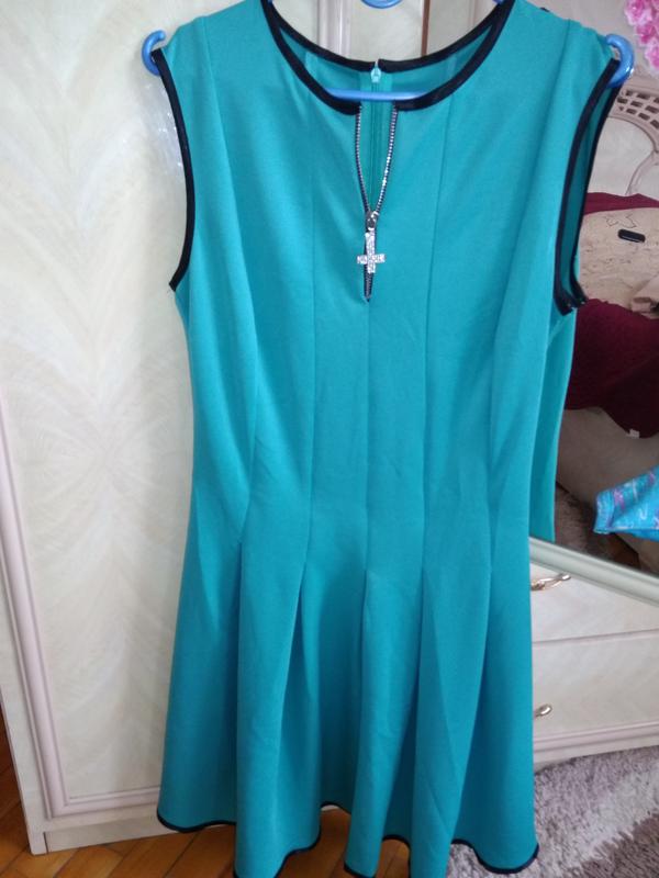 Красивое бирюзовое платье.Не подошло по размеру.На все интересующие вас вопросы отвечу.Замеры по запросу.Хорошо тянется.Для девочки 12-15 лет.Длина-83см.
