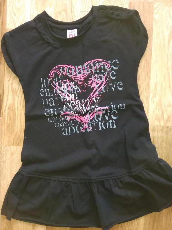 Продам красивое платье-туничку для девочки на 6 лет вышито сердце стразами состав: 95% хлопок 5% еластан длина -57см ширина по гр.кл.-32см