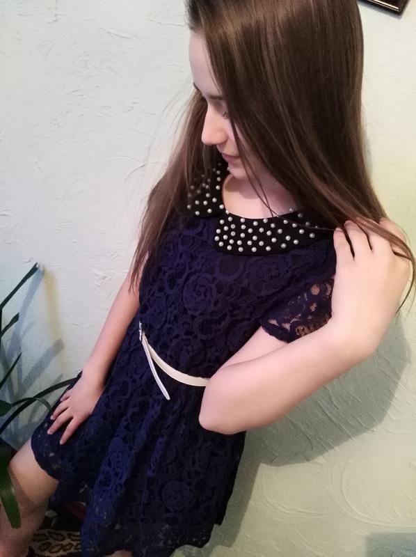 Новое шикарное гипюровое платье для модницы! Лиф расшит бусинами, на талии резинка, в комплект пояс не входит. С поясом +50грн. Размеры на возраст 10 лет. Замеры: 10 - грудь 43см (до 48 см), длина 80см Более точные замеры в личном смс.