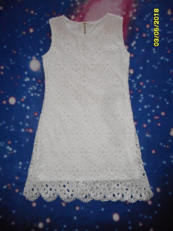Новое (но без бирки) платье, возраст по этикетке 12 лет. Замеры: длина по спинке 71,5 см, ПОГ 36,5 см. Состав ткани: 65% хлопок, 35% полиэстер. Цвет - молоко.