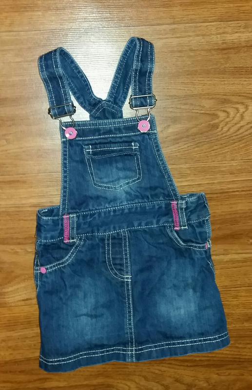 Джинсовый сарафанчик на девочку фирмы F&F.Рост 92 см (1.5-2 года).Качественный,красиво пошит.В хорошем состоянии,без дефектов.Сбоку застегивается на 2 кнопки.Длина 49 см,пояс 26 см.