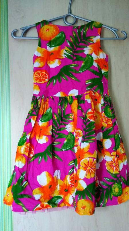 Яркое хлопковое летнее платье сарафан -сочный принт на 4-6 лет