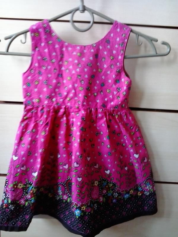 Красивое малиновое платье на девочку 3 лет. Сочные цвета и красивый принт. Застегивается сзади на пуговицы и завязывается на бант. ПОГ - 26 см. Длина - 47 см.