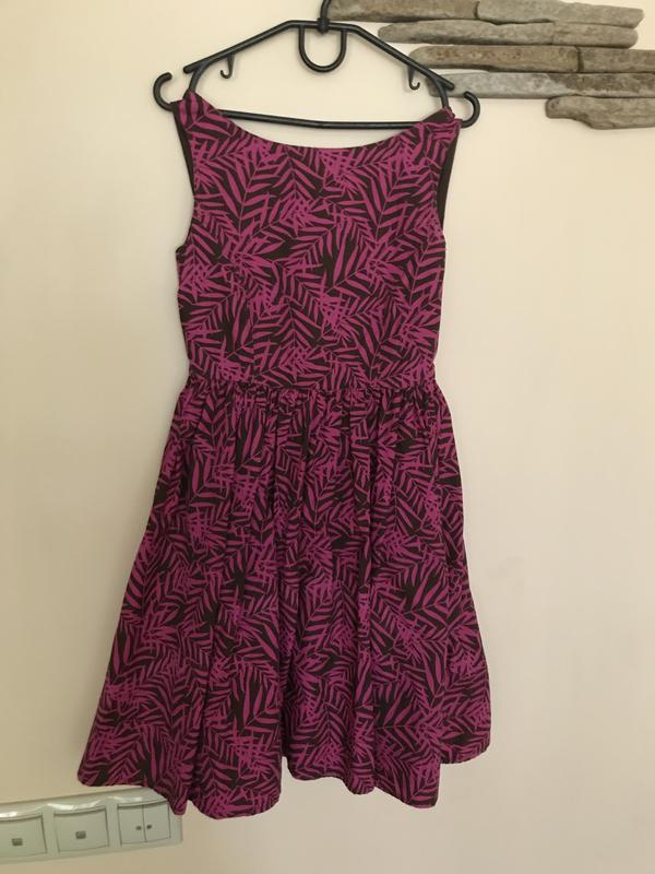 Очень оригинальное платье для девочки, про-во Шри-Ланка, сзади на спине бант с полуоткрытой спинкой. На нём р-р 8-9 лет, но маломерит, идет на 6-7 лет. Полностью без дефектов.