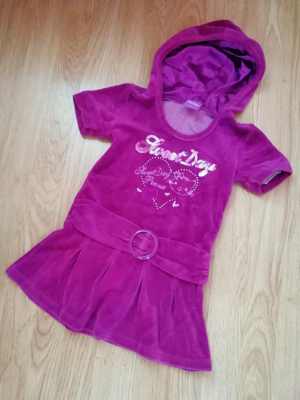 Велюрове платице для девочке 4 лет, фирма URСHIN. Замеры: длина 55 см, ширина в поясе 29 см, рукавчик 14 см, плечё 6 см. Очень красиво смотрится.