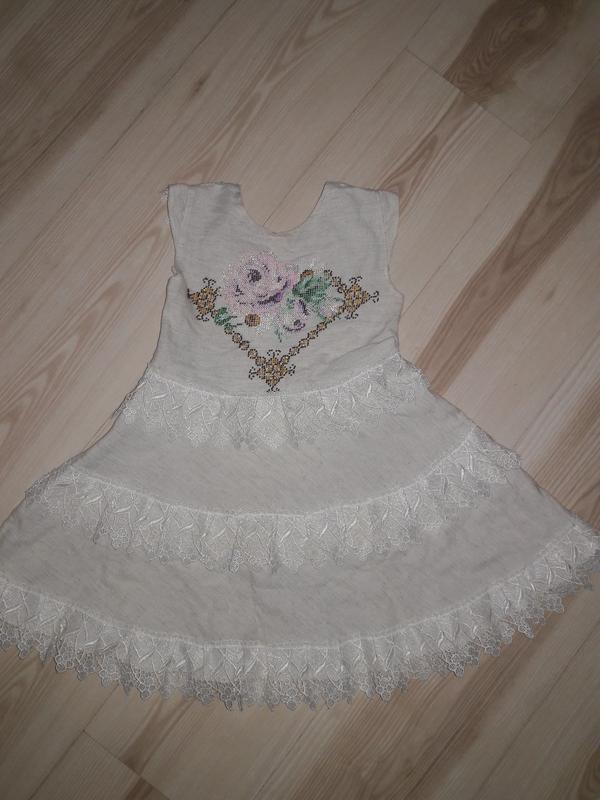 Тканина льон, оздоблене мереживом,вишивка на грудях і спинці чеським бісером (із цікавою спинкою,збоку на потаємному замочку. Пог-31.5, пот-31, довжина-60см