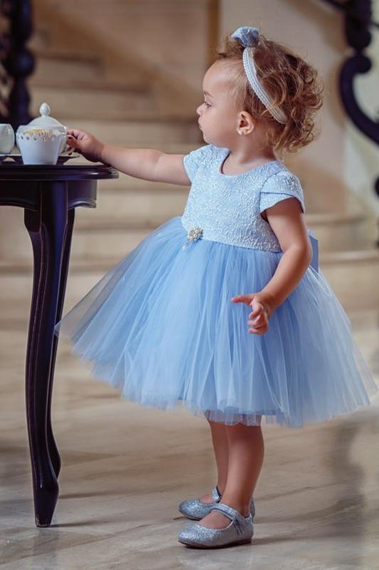 Платье для девочки с завышенной линией талии. Рукав тюльпан; вшитый поясок для регулировки ширины изделия. Пышная юбка из двух слоев сетки. Платье на подкладке. Застежка - потайная молния на спинке. Платье декорировано брошью. В наличии на рост 86 Замеры на рост 86 см: Ширина плеч 19 см Расстояние от горловины до плеча 4 см Полуобхват груди 25,5 см Полуобхват талии 26 см Длина рукава наружная 6 см Длина изделия 49 см Длина от проймы по низа 36 см