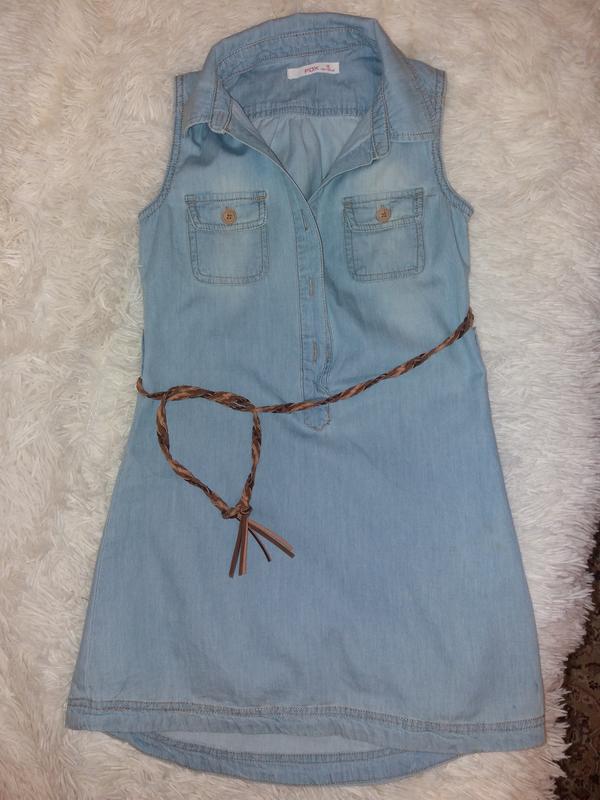 Джинсове сукню FOX, в ідеалі, легенький тонкий джинс - на літо саме воно! Зростання - 124-133 см по бирочке. До нього йде плетений поясок. Заміри - довжина спереду 64 см, ззаду трохи видовжене 68 см, під ручками 32 див.