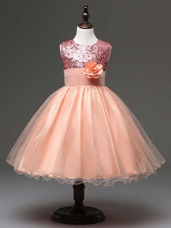 Очень красивое нарядное платье для девочки с пышной юбкой, два слоя фатина, основная юбка, подьюпник. Верх украшен паетками . Есть цветок дикорация, который отстегивается. Заде талия втягивается поясом. Цвета Голубой Беж Персик Малиновый Красный Нежно розовый Темно синий Фиолетовый Ціна 590-640 грн