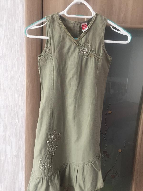 Очень красивое летнее платье из хлопка и льна. Полностью натуральное! ПОТ 33, длинна 84. Цвет оливковый.