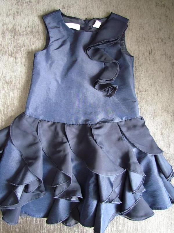 Красивое платье из тафты. Есть подкладка. Украшено шифоновыми и атласными воланами. Можно носить как отдельное платье или как сарафан на блузку или реглан. Замеры: Ширина в плечах 25см Ширина под руками 29см Длина 55см При покупке от 3-х вещей доставка БЕСПЛАТНО.