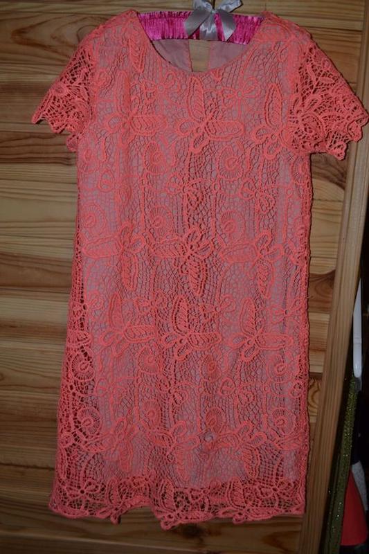 Летнее кружевное платье НА ДЕВОЧКУ! Хлопок. Хорошее состояние. Обнаружена дырочка в кружеве - фото 2. Платье на хлопковой подкладке. Размер на 6-7 лет.примерно Длина - 72 см. ПОГ - 36 см. ПОТ - 35 см.