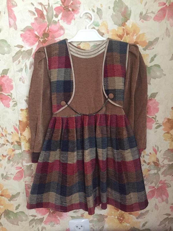 Плаття на дівчинку тепле, на ріст 104-110 см Стан нового Довжина - 59 см під руками - 32 см рукав від плеча - 40 см плечі - 28 см