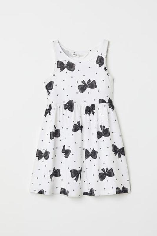Трикотажное платье без рукавов, с принтом. Отрезная талия с расклешенной юбкой. СОСТАВ Хлопок 100% Размеры белое: 98/104 {2-4 года} 110-116 {4-6 лет} 122-128 {6-8 лет}