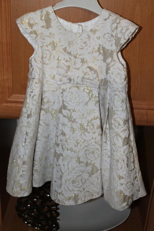 Очень красивое нарядное платье. По бирке 6-9 мес., но может быть и дольше. Мы носили на год. Платье одели один раз и выросли. Замеры: ПОГ - 23 см., ПОТ - , длина - 43 см.