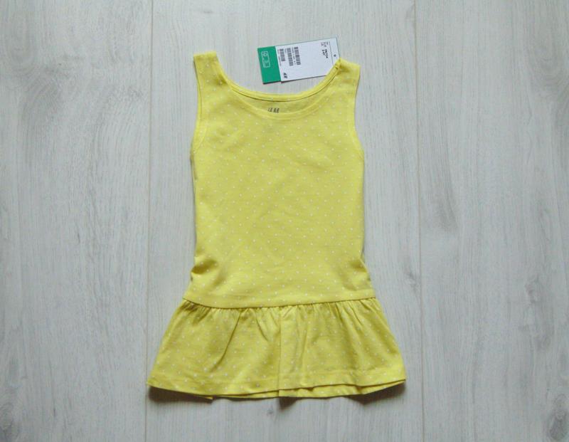 Новый яркий сарафан для девочки. H&M. Размер 2-4 года. Состояние: новый, с биркой, в оригинальной упаковке. Состав: 100% органический хлопок. Замеры: длина 42 см, длина до пояса 32 см, ПОГ 28 см, пройма для рукава 14 см, плечи 20 см. Цена 210 грн.