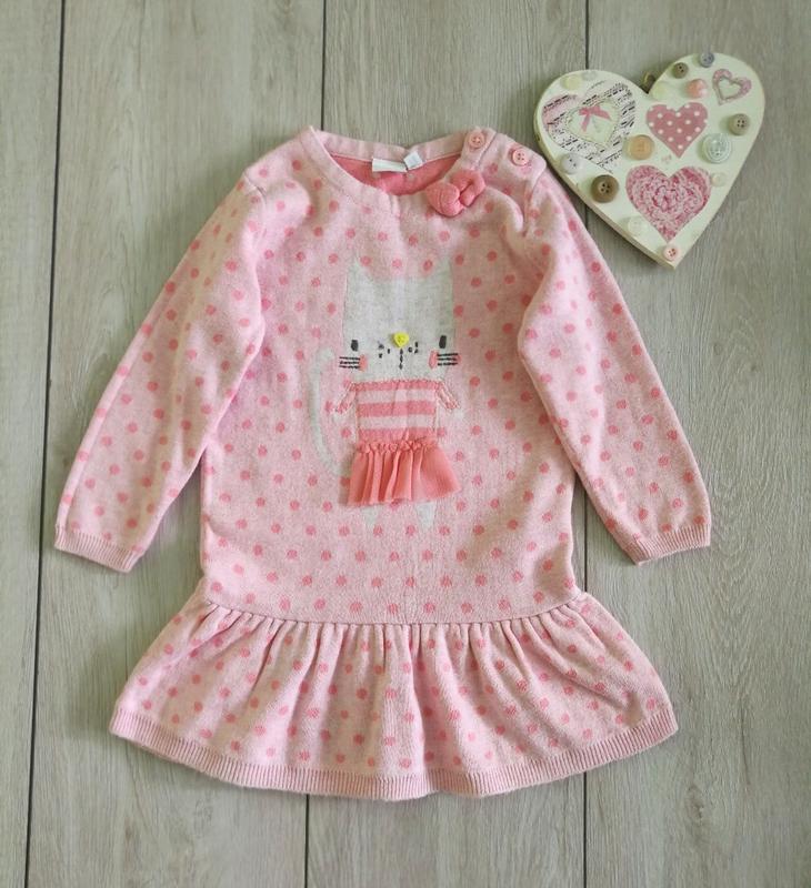 Теплое платьеце Bluezoo на 9-12 мес, длина 48 см, рукав 29 см, под ручками 29,5 см