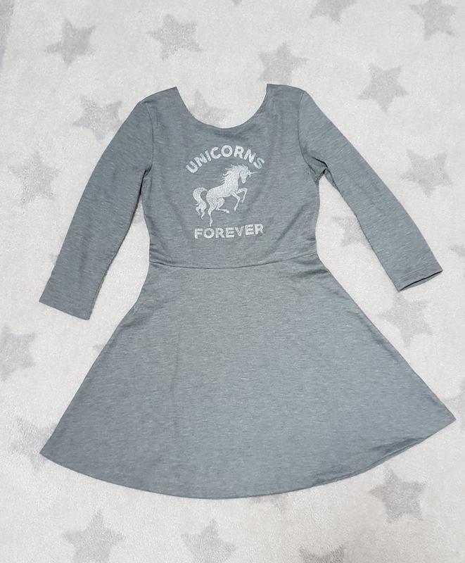 Платье HM, на девочку 146-152см. На 10-12 лет. С отрезной талией, и переливающимся единорогом. Платье базовое, подойдет под все. Расклешенная юбка делает красивый силуэт. Новое, с бирками. Замеры по запросу.