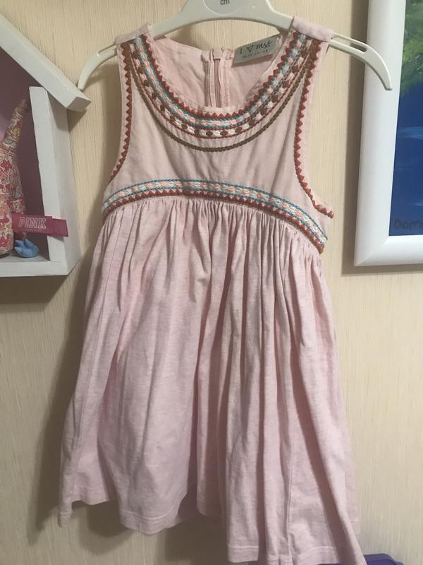 На 3 годика,с подъюбником хб и сзади потайная молния. Деффектов нет, молния работает,ткань розовый меланж трикотаж. Сзади с шлейфом,то есть немного длиннее чем впереди. Красивое с пышной юбкой