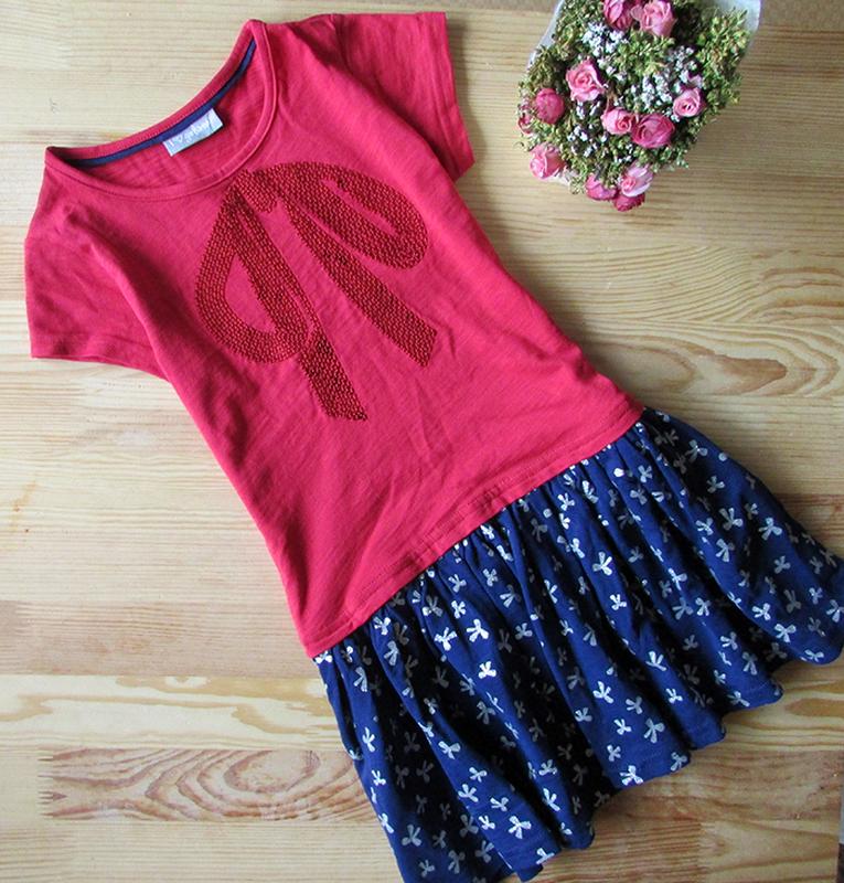 платье Matalan на 5 лет , верх -украшен бантом в паетки, низ -серебренные бантики в блестках, 100% хлопок ,новое. ширина-29,5см, длина от плеча-56,5см-