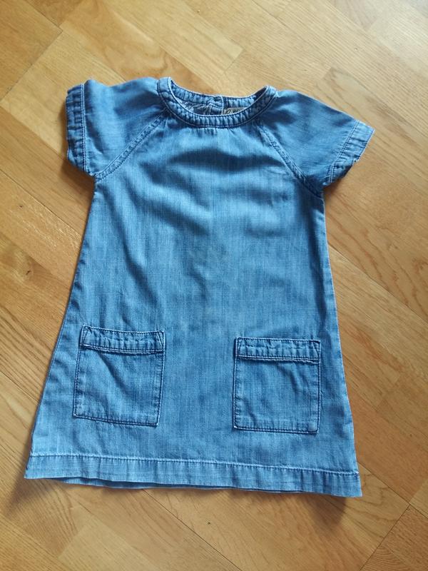 Джинсовое платье NEXT с кармашками на 2-3 года, застежка сзади на пуговицы. Джинс тонкий мягкий. Замеры: грудь-29, талия-32, рукав-14, длина по переду от плечевого шва-50. Состав: 100% хлопок