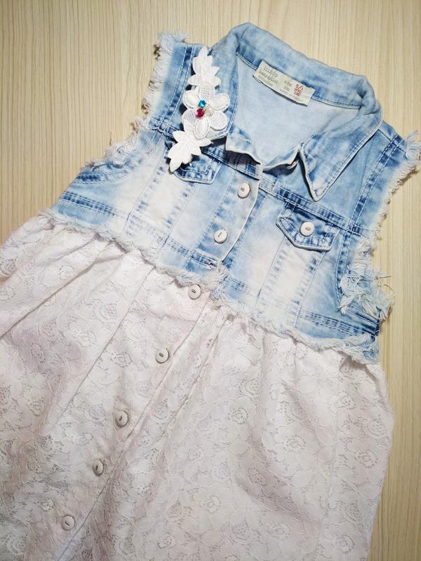 Платье, размер 110-116. Верх джинсовая ткань, юбка из гепюра с подкладкой.