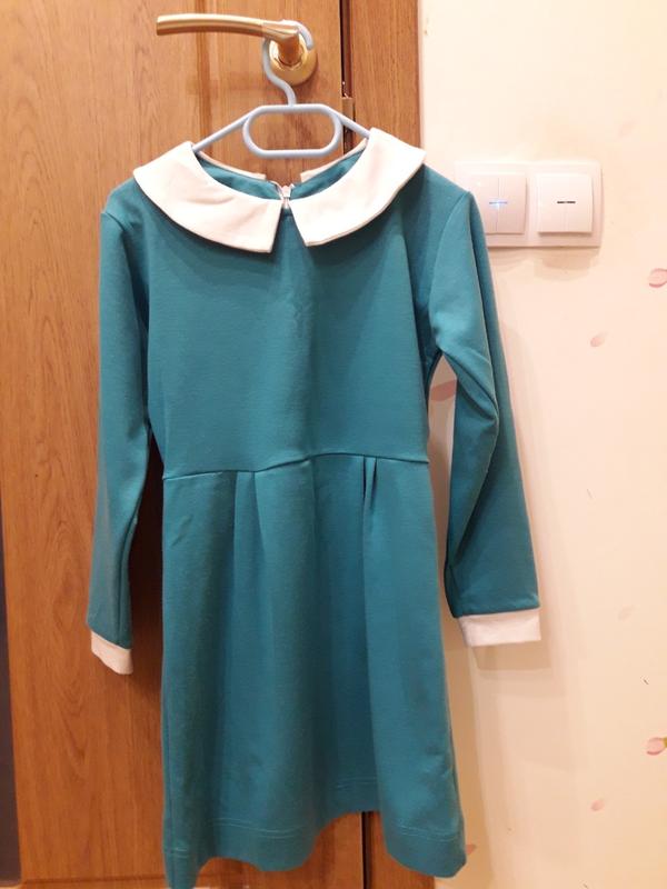 Платье на девочку 7-9 лет в отличном состоянии.Длина от плеча 68 см,рукав от плеча 43 см, подмышки 37 см,пояс 30 см.Тянется.Подойдет в школу.