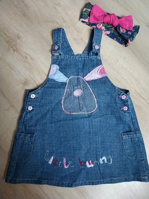 джинсовий сарафан,легенький, довжина46-см,шлейки регулюються на 2-3 роки
