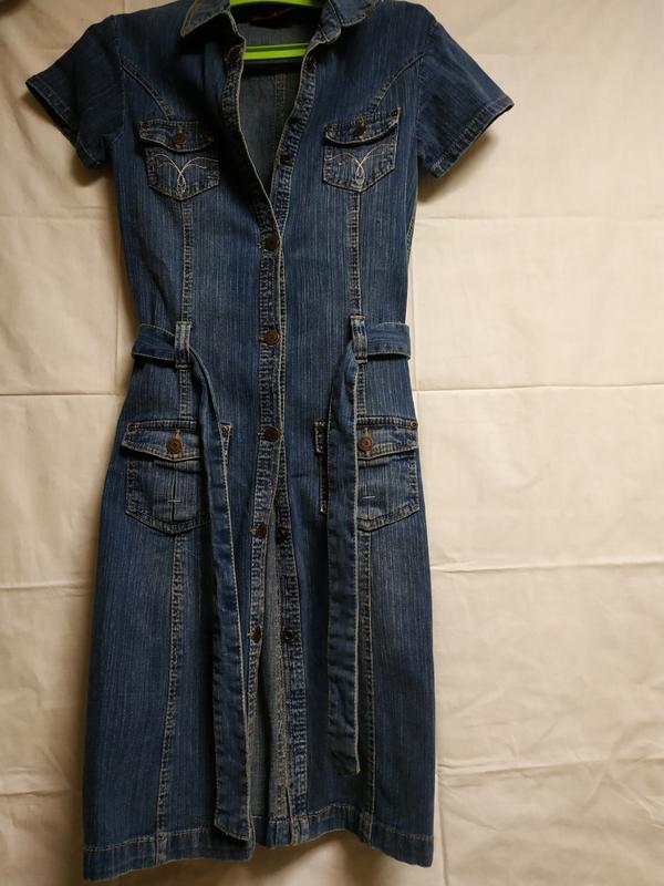 Джинсовые платье с поясом, качество отличное, бирки нет, надевалось пару раз