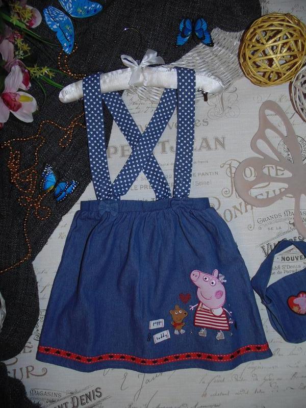 Чтобы нам не потеряться не забудьте подписаться БУДЬТЕ всегда в курсе НОВИНОК,,АКЦИЙ,РАСПРОДАЖ!!! *********** Гламурный сарафан+сумочка George Peppa Pig на 5-6 лет,рост 110-116 см 100%коттон Состояние:Б/У,отличное -длина 64 см (с бретелями,регулируеться в меньш.сторону) -длина юбки 34 см -талия 29 см/37 см СУМОЧКА -длина 13 см -высота 11 см застёжка "липучка" ЦЕНА комплекта 200 грн