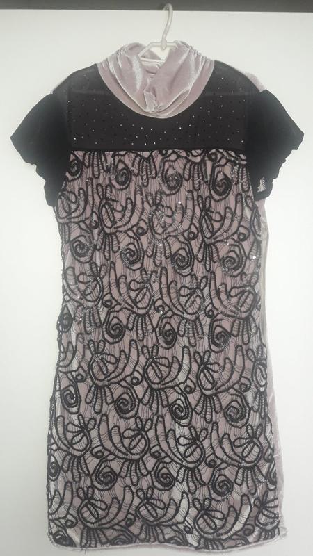Нарядное платье на выпускной, праздник, утренник. Велюр бежевого цвета, спереди ажурная сетка с блестками. Сбоку молния. Смотрится очень красиво. Длина по спинке 70,5 см Ширина под мышками 36-37 см Платье хорошо тянется
