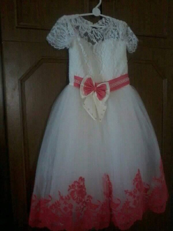 плаття дужe гарнeнькe, з підюпником, ззаді є шнурівка,на дитині виглядає шикарно,одягнeнe один раз на випускний в садочок, шитe на замовлeння, заміри і додаткові фото по запиту, відправочка: нова пошта заміри: пог 28см пот 28 см довжина юбки 52см