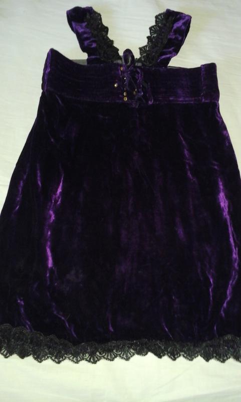 Сарафан для девочки 4 - 5 лет из бархатной ткани. Размер 36. Цвет ярко - фиолетовый. Длина 65см, объём груди 63см, объём бёдер 88см. Сзади на "молнии", украшен кружевом и пайетками. В очень хорошем состоянии - носился мало и аккуратно.