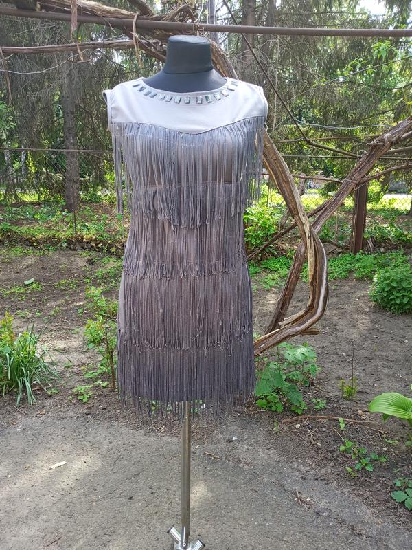 до будь-якого лоту в подарунок! Серое,оригинальное, с бахромой платье на девочку лет 12-13!