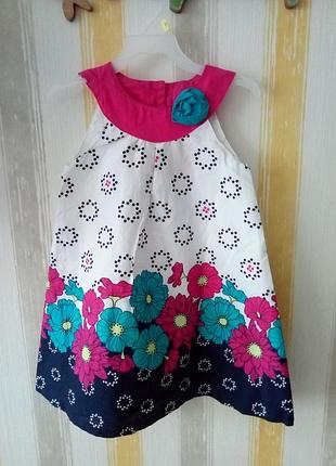 Новый с этикеткой сарафан для девочки. Покупался в США. Внутри - тонкая ситцевая подкладка. На кокетке - декор в виде розочки из ткани. Состав: 100% хлопок, подкладка - 80% полиестер, 20% хлопок. Размер - 6 лет. Длина - 64 см ПОГ - 33 см. Размер - 3 года: Длина - 53 см ПОГ - 28 см