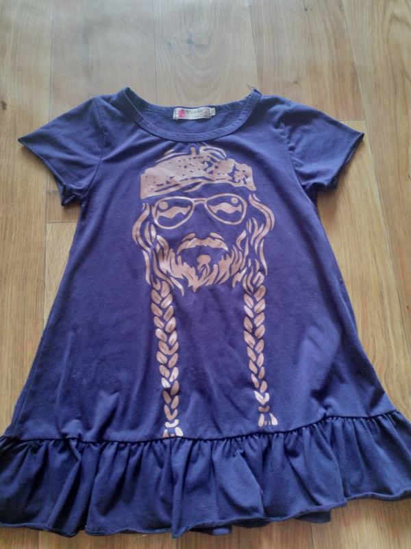 Платье с крутым панк принтом,лёгкое и невесомое. Мы носили с 2 до 4 лет. В идеале.