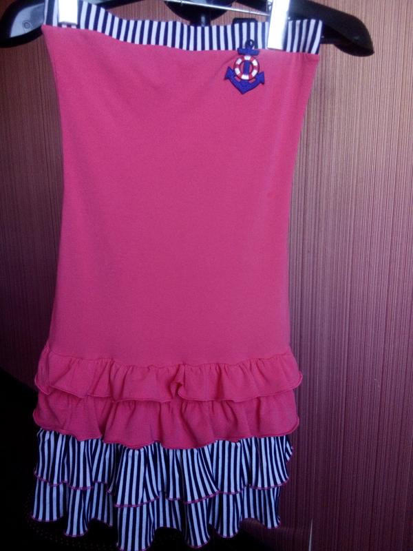Платье-бюстье кораллового цвета, приталенное с пышной юбочкой к низу в морском стиле. Ткань приятная к телу, тянется, не жаркое. Размер 38. Замеры: длина платья от груди 64 см., По груди 32 см., По талии 30 см., ПО бедер 34 см.
