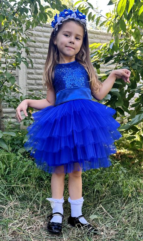 Сукня святкова дитяча, синя, пишна. розміри від 80 до 158 см.