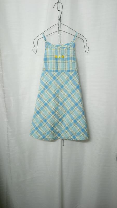 100 %-cotton приятный к телу 🌼 Тонкий Лёгкий 🧚♂️ Нежно бирюзво голубая клеточка(+жёлтая) Ткань оригинальная слегка жатка Комфортный фасон для жары(трапеция Сбоку Замочек Дл.из - 57.,пог - 31 Низ - 47 4-5 лет