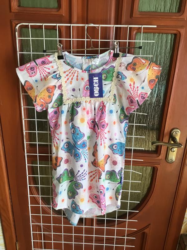 Стильное, легкое и воздушное платье для девочки, отличного качества, производства Украины, торговая марка Овен,идеально подходит для жаркого лета, прогулок и моря. В таком легком платьице вашему ребёнку никогда не будет жарко. Новое с биркой, цена снижена, стоило 600 гривен. Отличное , супер платье. Есть размер на рост 122,128,134,140.Сзади застегивается на кнопки.