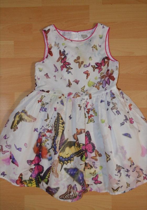 Наряденое платьес принтом бабочек на 6 лет, длина 62 см, ширина 31 см, в отличном состоянии