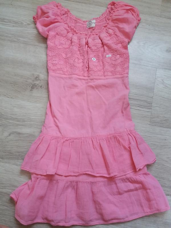 Нове плаття. Спинка на сукню у вигляді гумки тягнеться. Заміри :дл.по спинці 64см. Стать.обх. грд. 28см. Стать.обх. талії.28.5 см На вік 8 років. Ще раз уточнюю по всій спинці йде гумка добре тягнеться. В розтягнутому вигляді підлогу.обх.талії 34см.