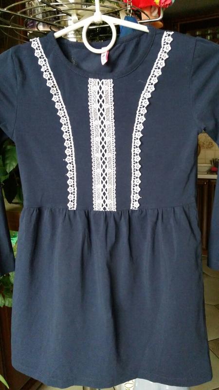 Бавовняне шкільне платтячко, дуже практичне, красиве і легеньке. Зріст 122-128. Довжина 60 см, довжина рукава 40 см.