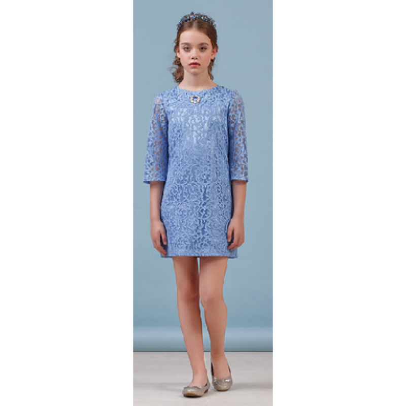 Ніжна та вишукана святкова сукня для дівчинки блакитного кольору. Зверху оздоблене мережевом. Розміри:158 Тканина - атлас, кружево Склад - 100% п/э. Підкладка - 100% хлопок Довжина 77см Рукав 40см Плечі 35см ПО грудей 38см
