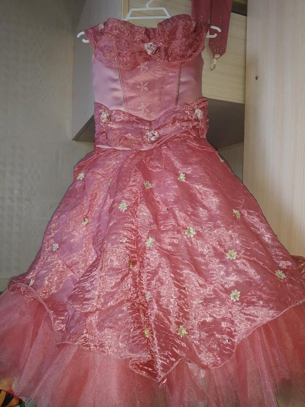 Спідниця три шари фатину, шили окремо, так віддам. Ззаду корсет на блискавці. Сукня оздоблена камінчиками і квітками. Довжина 87 см Довжина спідниці 58 див. Корсет довжина 29 див. Підійде на худеньку і повненьку дівчинку. Про вибір не пошкодуєте!!!