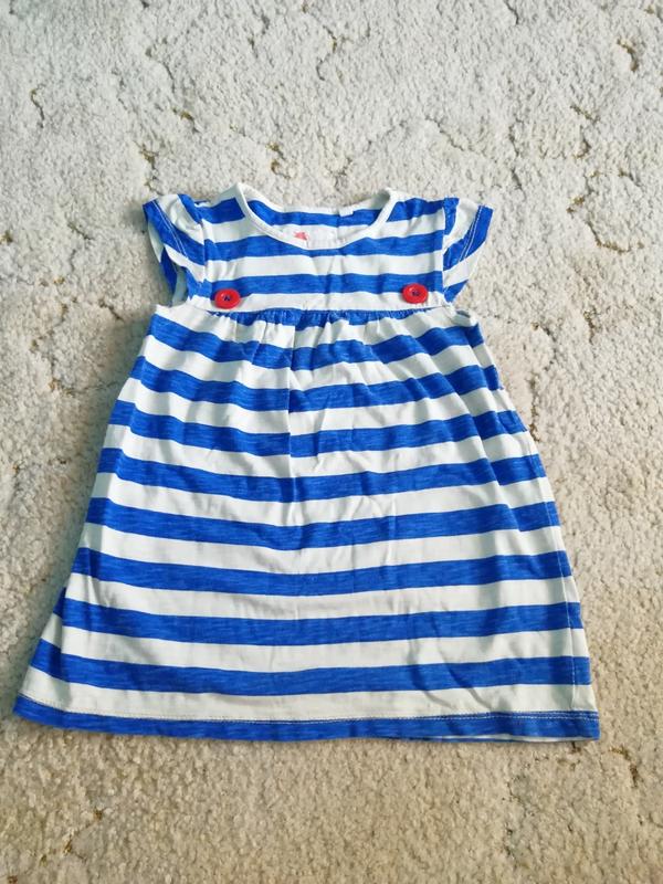 Летнее лёгкое платьице в морской тематике (в бело-синюю полоску) на девочку 1-1,5 лет. 100% хлопок, трикотажное, хорошо тянется, фирмы Next. Без изъянов и пятен.