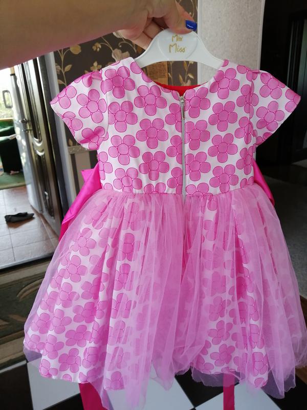 Дуже гарна святкова сукенка! Розмір 80. Одягалася лише раз на свято. Не має ніяких пошкоджень чи плям. Лишилася в тому вигляді в якому і купувалася . Поясок на сукні з брошкою пришиті. Має приємну підкладку .