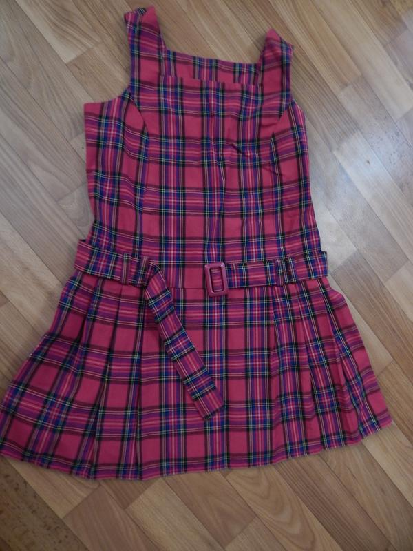 Хороший школьный сарафанчик, без дефектов. Указано на 10 лет и рост-140 см. Замеры: длина 67 см, длина до ремешка 36 см, пог 39 см, пот 38.